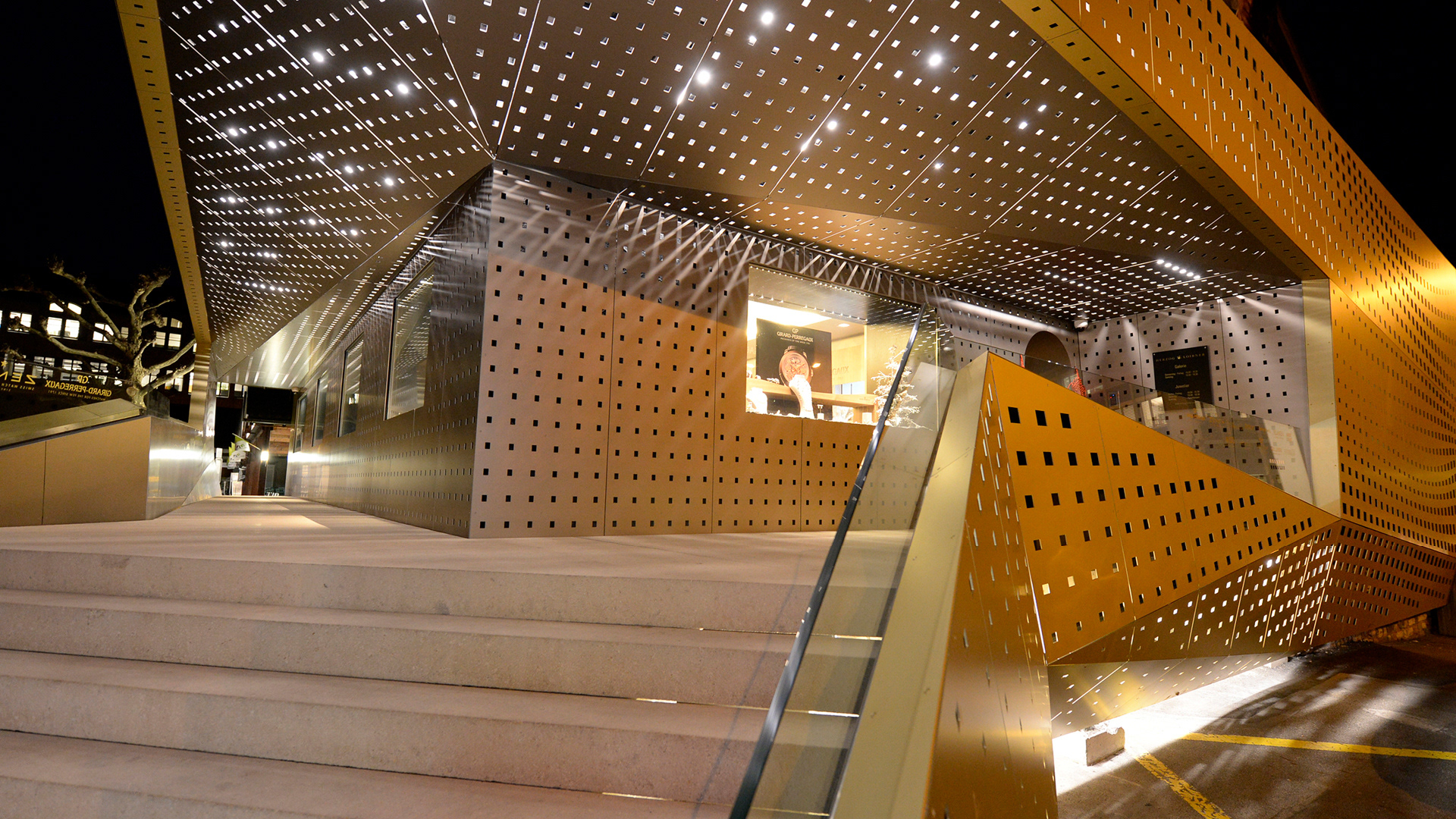 Auch die Fassadengestaltung wurde als Teil des Markenauftritts neu gedacht: Eine temporäre, baulich unabhängige Konstruktion verwandelt das bestehende Wohnhaus in ein visuelles Highlight – und macht Herzog & Loibner schon von aussen zum Magneten für Schmuck- und Uhrenliebhaber.